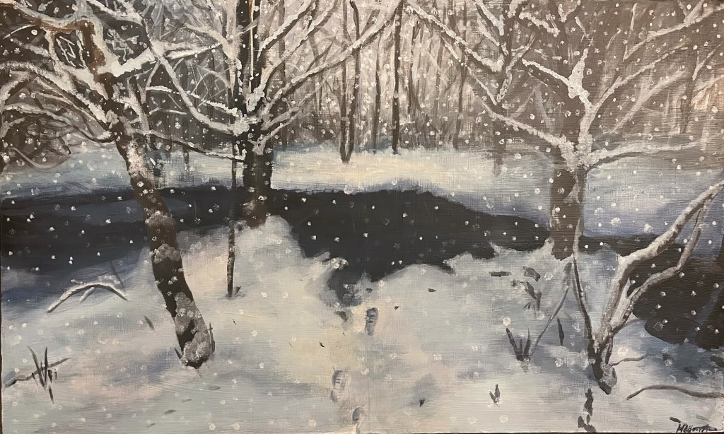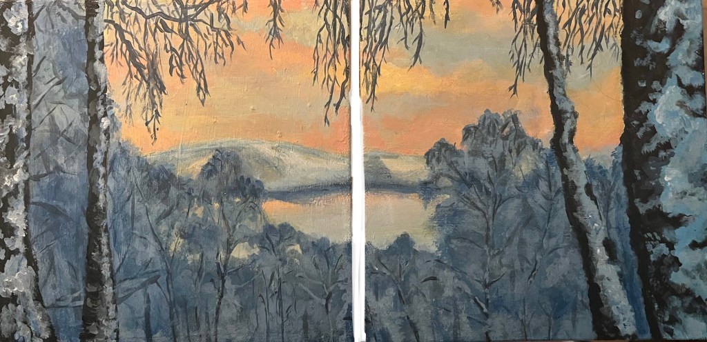 Title- Into the woods I go to disappear Medium- Acrylic Paint on MDF. Size- 56 x 34cm x 6mm MDF. Year- 2023. Price £375 Title- Winter Solitude. Medium- Acrylic Paint , paper and Mod podge on canvas wrapped MDF. Size- 20 x20 cm and 20 x 20cm Year- 2024. Price £180Title – In search of Awen Medium – Acrylic paint on canvas wrapped MDF Size- 45 x 80.5 cm. Year- 2021. Price – £350 Title- The water gazer (River Don). Medium – Acrylic paint and varnish on canvas wrapped MDF. Size – 20 x 14 cm. Year- 2021. Price – WAS £55, NOW £30 ! Title – Greeting the sun Medium – Acrylic Paint on canvas wrapped MDF. Size – 78.5 x 61 cm. Year – 2022. Price – WAS £300 , NOW £100 ! Title – Fyvie lake reflection. Medium – Acrylic paint, paper , mod podge and varnish on canvas wrapped MDF. Size- 24 x 16.5 cm. Year- 2021. Price – WAS £75 , NOW £40 !